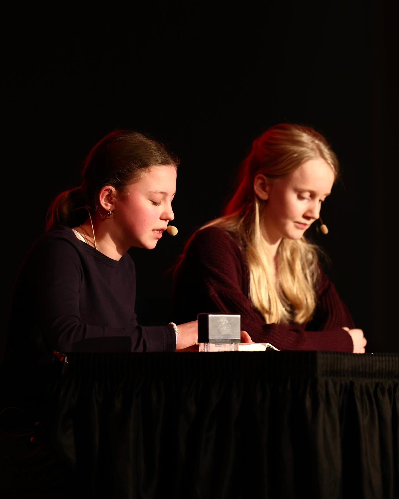 Wie bitter diese Ironie für Weinberg gewesen sein muss, zeigte sich auch in der folgenden Lesung: Lale Trieschmann (Jg. 7) schilderte, wie der dreizehnjährige Albrecht die Schrecken der Reichspogromnacht erlebte. Diesem bis dahin schlimmsten Tag seines Lebens folgte eine jahrelange Leidenszeit, die schließlich in der Deportation nach Auschwitz mündete. Sein Bruder Dieter wurde ebenfalls verschleppt – ohne ihn hätte Albrecht das Grauen nicht überlebt, wie im letzten Teil der Biografie deutlich wurde, vorgetragen von Deike Miege (Jg. 12).